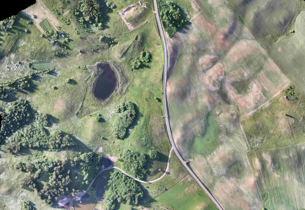 Koordinuotos žemės paviršiaus ortofotografijos sudarymas, žemės paviršiaus skaitmeninio modelio suformavimas, taškų debesies sudarymas.